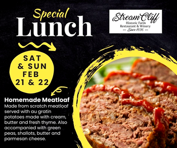 and wine will still be available! Visit us on Friday, Saturday & Sundays 11:00-3:00. Stream Cliff Farm Restaurant will be serving your favorite