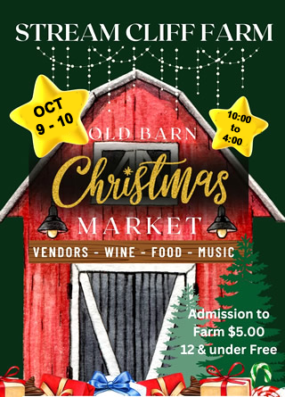 We are very proud to announce our 8th annual Stream Cliff Farm Artisan Weekend June 12 & 13 and Christmas at the Farm Old Barn Market October 9 & 10. Market times are10:00 to 4:00 and the admission is $5.00. (Children 12 and under are free)